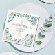 Eine wunderschöne, blau-weiße Blume-Serviette für eine Kindertauffeier. Liebliche religiöse Servietten mit einem eleganten Blumenstrauß und einem hübschen Kreuz hinter dem individuellen Drehbuch für Ihre Ansammlung oder katholische Zeremonie.