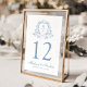 Elegant Blue Floral Wappen Monogram Wedding Tischnummer