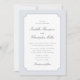 This refined wedding invitation features a soft blue ornamental frame that gently surrounds the wording, creating a graceful and timeless presentation. The delicate border gives the design structure and elegance while keeping the overall look clean, airy, and sophisticated — a style many women choose for classic, romantic celebrations.