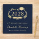 Élégant livre d'or bleu de la fête de remise des diplômes avec "Classe de" dans une illustration en or clair de couronne de laurier incorporant un casquette et un diplôme, le nom du diplômé dans un script d'or élégant, et "Félicitations" et leur nom d'école dans la typographie or moderne.