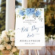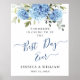 Elegant Blue Hydrangea Eukalyptus PROBE DINNER Sign.