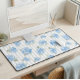 Elegant Blue Hydrangea Pattern Gray Stripe Desk Mat. Bring the timeless elegance of a coastal summer to your space with this delicate hand created art of hydrangea floral overlaid on a classic gray ticking stripe. Perfectly blending high-end garden aesthetics with a breezy East Coast vibe, this desk mat offers a sophisticated touch to your home or office space. Hydrangea design is original to Cross Fox Design.