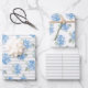 Elegant Blue Hydrangea Pattern Gray Stripe Geschenkpapier Set