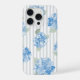 Elegant Blue Hydrangea Pattern Gray Stripe iPhone 15 Pro Hülle