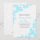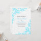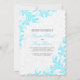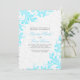 Elegante hellblaue Wirbel mit Blumenspitzen über weißes, blumenfeuchtetes Muster, Einladung zur Hochzeit.