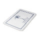 Fügen Sie Ihre eigene Touch zu diesem schlicht eleganten Design mit Ihrem Familiennamen oder Phrasen und festem Datum in blauen Text und blauen Palmen gerahmt in einem blauen Rahmen.