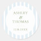 Elegant Blue Stripes Monogram Runder Aufkleber