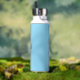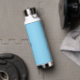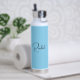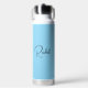 Modern style vibrant baby blue water bottle featuring minimal design with your name and initial in elegant script.