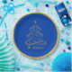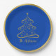 Ein wunderschöner Schatten des eleganten Boeing Blue Weihnachtsbaumes mit einem personalisierten Familiennamen. Der Teller ist mit Goldverzierungen geschmückt, um ihm ein elegantes und raffiniertes Aussehen zu verleihen.