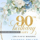 Elegant Boho Blue Floral 90th Birthday Invitation Einladung