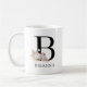 Ein hübscher Schwarz-Initial mit rosa Aquarellblüte und Palmetto verlasse eine Kaffeemaschine mit einer stylischen Serifenschrift mit hübsch gebogener Serife, die zuerst in schwarz geschrieben wurde, und einem klassischen Klassiker. Rosa auf schwarzem Design. Buchstaben B, Monogramm.