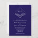 Elegant Boho Leaf Monogram Dark Blue Wedding Einladung