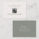 Elegante Gehäuse-Karte mit QR-Code für mehr Informationen, Details und Online-Antwort auf sage grün Farbe Skript und Hintergrund. Verwenden Sie das Tool Personalisieren, um Ihre Informationen hinzuzufügen. Entsprechende Artikel finden Sie in meiner Boho Sage Green Collection.