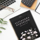 Restez organisé et élégant avec cet élégant planificateur de rendez-vous. Doté d'une couverture noire épurée agrémentée d'une délicate oeuvre fleur sauvage pastel florale, ce planificateur allie fonctionnalité et beauté intemporelle. Parfait pour les professionnels, les créatifs ou tous ceux qui souhaitent garder leur emploi du temps en ordre, ce planificateur va élever votre organisation quotidienne. À l'intérieur, vous trouverez des dispositions spacieuses permettant de suivre les rendez-vous, les réunions et les dates importantes. La liaison spirale de haute qualité assure la durabilité, permettant un retournement facile et une surface plane pour l'écriture. Son design minimaliste et sa disposition claire le rendent convivial tout en conservant un aspect professionnel. Ajoutez votre nom ou votre titre pour une touche personnelle, faisant de ce planificateur le vôtre unique ou un cadeau idéal pour un proche. Le design floral apporte un sentiment de calme et de sophistication, inspirant productivité et pleine conscience pendant que vous planifiez vos journées. Utilisé à la maison ou en déplacement, ce carnet de rendez-vous est votre compagnon idéal pour l'année à venir.
