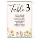 Elegant Boho Weadow Ivory Wildblume Wedding Tischnummer