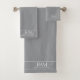 Modern minimalist couple’s monogrammed bathroom towels, featuring an elegant botanical accent on a gray background, bringing style to your bathroom decor. Designed for new or established couples who appreciate simple, elegant details, this towel set is a perfect blend of personal touch and understated sophistication. Ideal for, or any home that values modern minimal style.