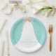 Eine Braut in ihrem Hochzeitskleid über einer weißen Rose auf einem türkisfarbenen (oder farbigen) Hintergrund ergänzt das Brautparty wunderbar. PASSENDE Artikel in unserem Geschäft.