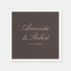 Minimalist personalized wedding napkins featuring elegant calligraphy names in brown color design.