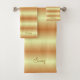 Élégant et élégant beau doré brun et jaune rayures ensemble de serviettes de bain. Le texte peut être customisé.