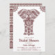 Éblouissez vos invités avec cette élégante invitation à la douche nuptiale ethnique mettant en vedette un bel éléphant artistique contre un arrière - plan blanc. Ajoutez simplement les détails de votre événement sur ce modèle facile à utiliser pour en faire une invitation unique. Retournez la carte pour révéler un élégant motif indien traditionnel marron et blanc au dos de la carte.