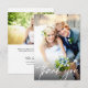 Célébrez votre journée spéciale et express votre sincère gratitude avec notre Modèle photo Elegant Script Mariage. Cette carte de remerciements verticale offre une option économique sans compromettre l'élégance et le style. La personnalisation est la clé, vous permettant de personnaliser chaque détail de la carte. Montrez une belle photo de votre mariage sur le devant, capturant un moment chéri qui réchauffera le coeur de vos proches. Au dos, customisez la carte avec les noms de la mariée et du marié, un message sincère et la date du mariage, créant une expression vraiment personnelle et significative de gratitude. Notre élégante typographie manuscrite ajoute une touche de sophistication au design. La couverture blanche assure la lisibilité tout en permettant à la photo choisie de briller. Pour garder clarté et lisibilité, une transparence noire est ajoutée derrière les mots "merci", créant un contraste visuellement attrayant par rapport à toute photo que vous utilisez. Même avec sa petite taille, ce carte de remerciements est conçu pour avoir un impact important. Il offre une option économique sans compromettre la qualité ou le style, vous permettant d'express votre gratitude à la famille et aux amis d'une manière significative et mémorable. Partagez la joie de votre journée spéciale et exprimez votre appréciation avec notre Elegant Script Mariage Modèle photo. Un choix parfait pour les couples à la recherche d'une belle carte de remerciements, personnalisable et économique qui laissera une impression durable. *CHOSES IMPORTANTES À REMARQUER CONCERNANT LA STATIONNAIRE BUDGÉTAIRE* Les feuilles budgétaires de 4,5 po x 5,6 po se trouvent dans une enveloppe de 4,9 po x 5-7/8 po (A6). Vous pouvez acheter des enveloppes blanches à votre commande. Le stock "semi-brillant" est d'épaisseur 12,5 pt / poids 110 lb, avec un blanc éclatant et une épaisseur acceptable pour les faire-part, invitations et autres papeteries. S’il vous plaît être avisé, l’option "satin" est beaucoup plus mince avec un poids de papier de 80lb, ils sont utilisés pour les pages de prospectus et de magazines et il n’est pas cardstock. Toujours vérifier votre oeuvre finale avant d'acheter (Nous ne sommes pas en mesure de voir les clients du design modifié faire de notre bout...Les designers créent les modèles mais les commandes finales vont à Zazzle pour la production. Contactez support@zazzle.com si vous avez des questions concernant la réalisation, l'expédition et la production.