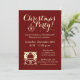 Élégant bureau modèle de fête de Noël invitation. Invitation personnalisé pour les fêtes. Couleurs marron rouge, vert & écru. Texte et couleurs de faire-part personnalisés. Ajoutez les options date, emplacement et rsvp. Typographie de script élégante. Logo des Feuilles saints et du grand clocher. Design chic pour les entreprises. Idéal aussi pour les fêtes à la maison.