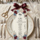 Welcome guests to your sophisticated celebration with this deep red and stylishly modern dining design featuring beautifully refined romantic typography.The composition utilizes a striking deep red palette balanced with ample negative space to create a visually striking, modern aesthetic. A structured layout hierarchy directs the eye from flowing, handwritten-style script down to clean, formal serif typography for optimal readability and a high-end feel. This is a flat printed image with a smooth matte paper effect, not actual raised material.