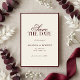 Create your own custom wedding save the dates in a luxurious old money style. Add your personalized details announcing your wedding day in elegant, timeless typography featured here in burgundy and cream color design.