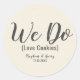 Diese individuell gestalteten Aufkleber sind perfekt, um Ihrem Cookie oder Ihrer Leckerei Gefallen Tasche oder Box hinzuzufügen! Enthält den Text 'We Do- Liebe Cookies' und 'Danke' in einem modernen Script Schriftart Typografie. Sie können es mit Ihren Namen oder Initialen und dem Hochzeitstermin personalisieren.