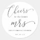 Individuell gestaltete Brautparty-Aufkleber mit "Cheers to the future Mrs."-elegantem Kalligrafiedesign.