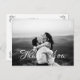 Stilvolle Hochzeit danke Ihnen Post-Card-Vorlage mit einem Foto auf der Vorder-und Rückseite. "Danke" in einem modernen weißen Skript-Schriftart, und benutzerdefinierte Text danke Ihnen Nachricht.
