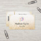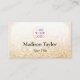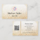 Un modèle de carte de visite à double face élégant avec un arrière - plan de parties scintillant en or brillant imprimé et personnalisable. L'avant affiche votre nom, votre titre et votre logo, tandis que l'arrière comprend de l'espace pour vos coordonnées et un code QR numérisable. Idéal pour les salons, les marques de beauté, les consultants et les professionnels qui veulent une atmosphère moderne et luxueuse avec un design fonctionnel. Modifiez facilement du texte, téléchargez votre propre logo et personnalisez les détails pour créer une carte de démarcation qui vous connecte instantanément avec les clients.