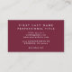 Ces élégants cartes de visite de beauté modernes sont parfaits pour un fleuriste, esthéticienne, wedding planner et d'autres ! Des fleurs de Bourgogne encadrent ce design classique simple.