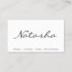 Simple, Simple, Moderne, Élégant Classy Deux Côtés, Blanc avec Police de Script Noir, Texte de prénom seulement, Carte de visite professionnel idéal pour une femme Designer, Décoratrice d'intérieur, Artiste maquilleuse, Maquillage, Cosmetologue, Coiffeur, Styliste de cheveux, Chef de projet, Planificateur d'événements, Planification Mariage, Consultant en relations publiques, ergothérapeute, Dentiste, Psychologue, Psychologue, Agent immobilier, avocat, avocat, avocat, parajuriste, chiropraticien, nettoyeur, vétérinaire, interprète et traducteur, représentant commercial / représentant, ménagère, travailleur social et de nombreux autres professionnels. Vous pouvez modifier le texte en police, couleur, taille et emplacement en cliquant sur le bouton bleu "CUSTOMISER IT". Veuillez noter que les noms longs devront être redimensionnés. Maintenant avec la carte de visite correspondant Titulaire Disponible sous forme de carte de profil mince Autres Designs que vous pouvez aimer : Merci de visiter.