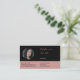Elegant Professional Black & Pink Carte de visite, conçu comme un modèle, il a des espaces réservés pour une photo de profil professionnel, nom, expertise, contact virtuel et coordonnées physiques. Le dos est orné d'un motif à rayures design en rose et noir avec une forme circulaire tenant les initiales et sous le nom de la société. Pour plus d'idées d'image de marque, visitez www.KBMD3signs.com. Pour obtenir de l'aide sur la personnalisation, contactez info@KBMD3signs.com.