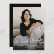 Cette belle carte commémorative comporte une photo verticale pleine image avec script de calligraphie moderne et typographie minimaliste. Le script sur le devant dit "In Loving Memory" (En mémoire d'amour). Au fond, une autre petite photo de carré avec espace pour une invitation à la fête de la vie.