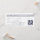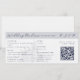 This wedding invitation is designed to look like a plane ticket. It features a semi-opaque illustration of a castle, which you can replace with an image of the destination wedding venue. Elegant dark blue lettering in serif and script fonts lay out the bride and groom names, and details of the wedding, including the location, date, and a QR code to RSVP.