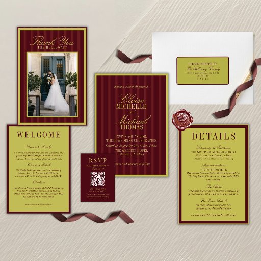 Elegant Chartreuse Burgundy Stripe Formal WeddingDesignt von Molly H
