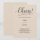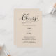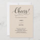 The eye-catching 'Cheers!' in elegant, flowing script immediately conveys a sense of joy and festivity, setting an upbeat tone for your special day. This beautiful typography is perfectly complemented by a clean, modern sans-serif font for all your essential details, ensuring clear readability for your guests. The soft, warm beige background provides a classic and versatile canvas, enhancing the overall feeling of refined warmth.