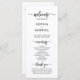 Das elegante Hochzeitsprogramm Chic Boho eignet sich perfekt für eine moderne Hochzeit. Alle Informationen über die Hochzeitsfeier und den Namen der Hochzeitsfeier auf diesem Programm aufgeführt. Design mit schwarz-kursiv handgeschriebenem Typografie/Kalligrafie-Pinsel-Schriftart auf weißem Hintergrund mit einem schlichten, sauberen Aussehen. Einschließlich Name der Braut und des Bräutigams, Datum und Ort, Reihenfolge der Dienstleistung, Dankeschön-Nachricht, Hochzeitsfeier und ein optionales "in lieving memory"-Denkmal. Einfach zu anpassen.
