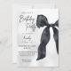 Featuring a dramatic black ribbon bow on a dark marble-inspired background, this design is perfect for a sophisticated adult birthday celebration.