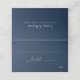 Elegante Chic Navy Blue Modern Script Wedding Platzkarte mit Platz für Ihre Gäste Essen Auswahl. Eine Seite hat die Namen und das Datum des Paares. Das andere Restaurant bietet Platz für die Gäste, die Tischnummer und die Speisen. Personalisieren Sie den Text für Ihre einfache elegante und schicke Hochzeit, Jubiläum oder Gelübde Erneuerung.