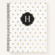 Ein hübsches Monogramm-Notizbuch mit Imitaten aus Goldfolie Polka auf weißem Hintergrund. Personalisieren Sie es mit Ihrem ersten, oder für einen Freund. Entworfen für Sie von BlackBerry Boulevard.