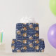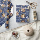 Make your holiday gifts extra special with custom photo wrapping paper. This elegant design features vintage-style illustrations inspired by the opulence of the Art Deco era. It includes leaping reindeer, festive Christmas trees and stars, paired with stylish retro typography. Personalize the template with three favorite photos, and the recipient's name, or your family surname. A unique design that combines timeless style with a modern twist! This seamless pattern gift wrap is available with a matte or glossy finish. Printed colors: dark midnight blue, white, and a gold color.