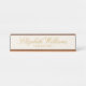 Customisez cette Elegant Classy Desk Nameplate avec des polices de script d'or faux, veuillez noter qu'il s'agit d'une impression couleur jaune et n'est pas une feuille d'or réelle. L'arrière - plan est de couleur beige crème. Cette plaque a finition métal or rose, vous pouvez changer cela en deux autres options, en finition métal noir ou argent.