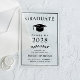 Élégant faire-part de diplôme universitaire acrylique clair avec un casquette de grade et le nom du diplômé, l'année de classe, collège ou université, diplôme et majeure ou des distinctions en polices simples et élégantes.