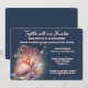 The rich dark blue backdrop enhances the luminous effect of the design, while crisp white typography—accented with a warm coral orange drop shadow—creates a striking, modern contrast that draws attention to your names and event details. The result is a refined yet vibrant aesthetic that feels both luxurious and effortlessly beachy.