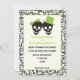 Elégant crâne Halloween faire-part de mariage vert, avec un couple de crâne noir marié et marié sur l'arrière - plan ivoire et une bordure motif crâne. Le marié porte un casquette vert et la mariée un arc vert.
