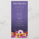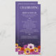 Fügen Sie Ihrem Hochzeitstag eine Touch Eleganz hinzu, mit diesem Blumentheaterprogramm, das den Hochzeitsservice und die Hochzeitsfeier in elegantem Weiß mit lavender lila Konfetti und farbenfrohen afrikanischen Gängen auf einem violetten, lila schwarzen Hintergrund bietet. Geeignet mit Namen der Braut und des Bräutigams, Veranstaltungsort, Datum des Empfangs, Service und Hochzeitsfeier. Design © W.H. Sim. Weitere Informationen unter zazzle.com/expressionsoccasions