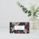 Das elegante Design der floralen Visitenkarte bietet Elfenbeinbein-Rose, blindfarbene Rosa-Pfannkuchen und tiefbordeauxfarbene Blume auf einem dunklen und dramatischen, weichen schwarzen Hintergrund. Fügen Sie Ihren Namen oder Firmennamen in der modernen Schrift hinzu, überlagert auf einem weißen Element in der Mitte. Personalisieren Sie die Rückseite mit Ihren Kontaktinformationen, zusammen mit einem anpassbaren QR-Code.
